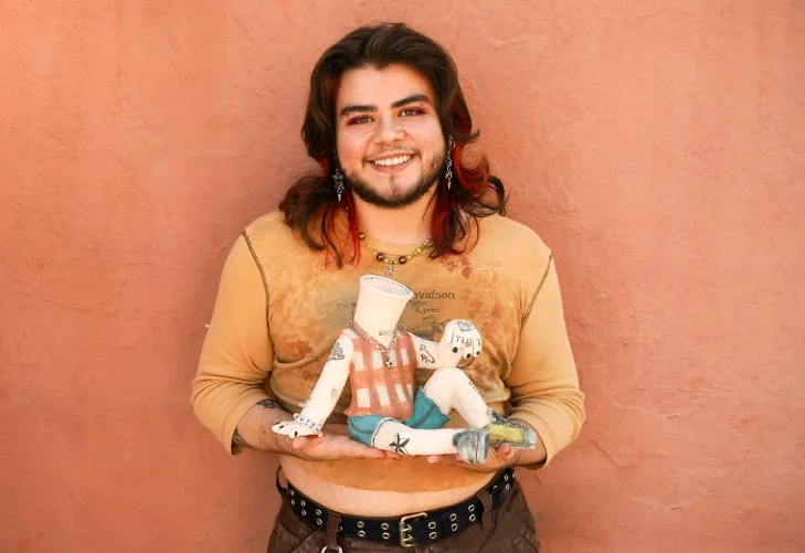 Sam Sequeira (they/them) is a ceramics artist from Houston, Texas. They graduated with a BFA in Studio Art with a concentration in Ceramics as well as an Art History Minor from the University of North Texas. They started working with clay in 2018, and have since exhibited locally and nationally, assisted local artists, and taught workshops. They are currently working and teaching as an Artist in Residence at KC Clay Guild, in Kansas City, Missouri. Sam’s work focuses on self expression as a queer and trans person. Through vessels and surface ornamentation, they narrate how the queer community often marks their own path in life as well as clothing through flagging and alterations. They often reference textiles and DIY elements like patches and cropped clothing. Their work aims to bring insight into their own battles and challenges as a trans person, and the relationship between queer people and clothing. They hope to bring relatability and reassurance to members of their community and a sense of humanity to those outside of it.